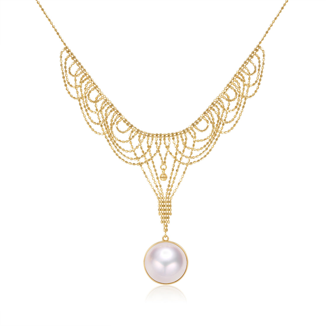 18K yellow Gold South Sea Cultured Pearl And Diamond necklace