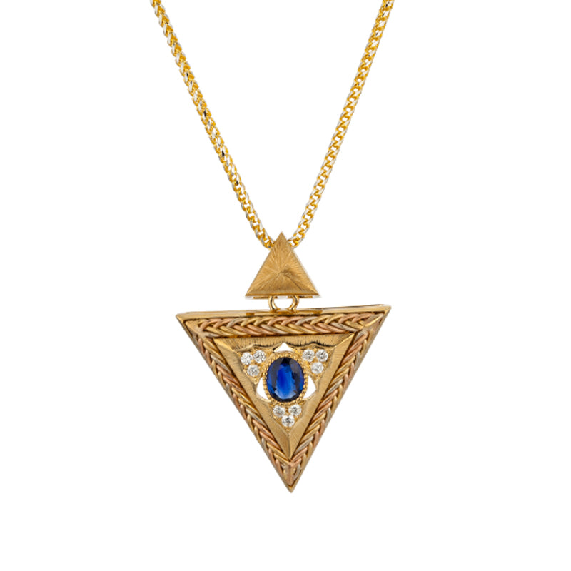 18k hand knitting yellow gold diamond with sapphire necklace