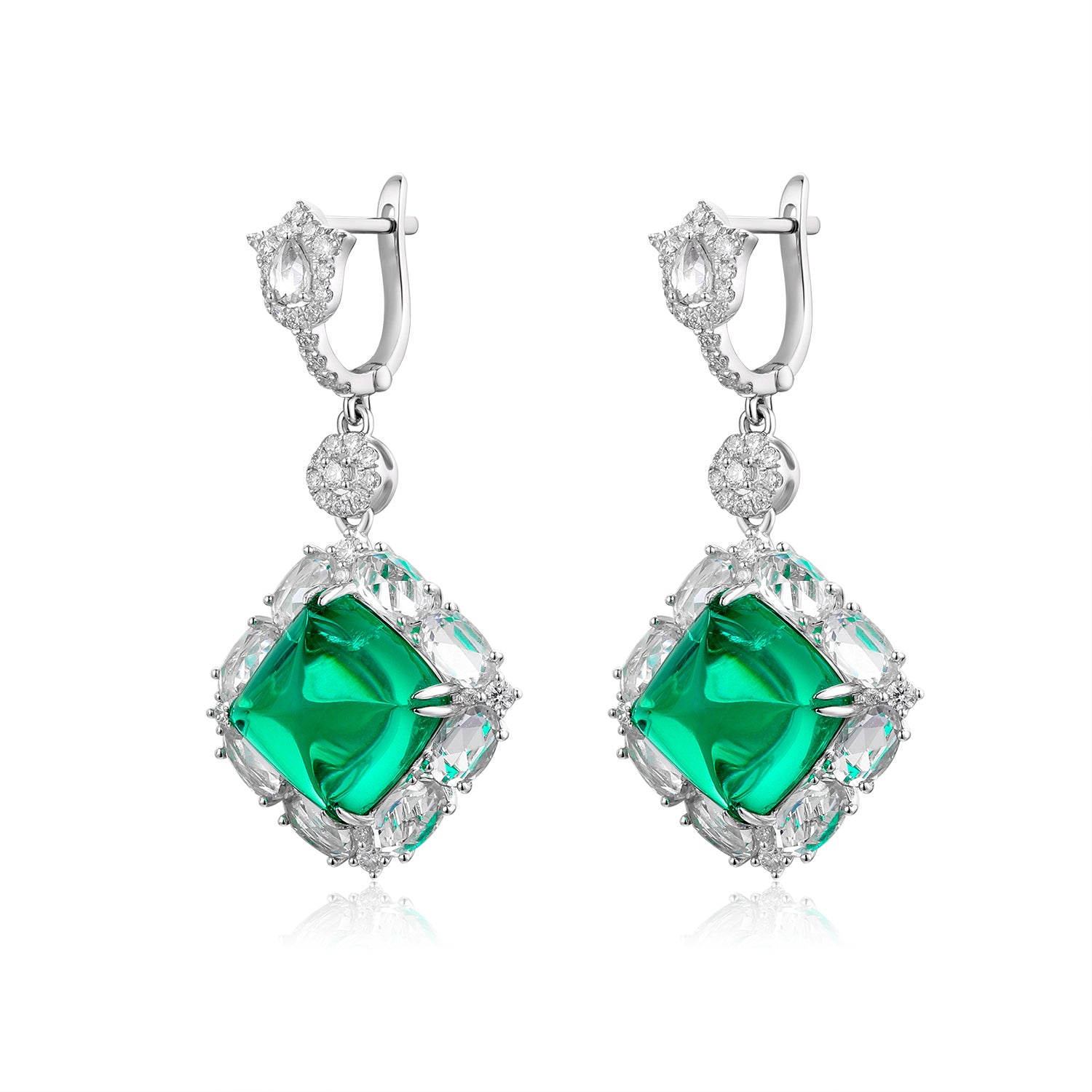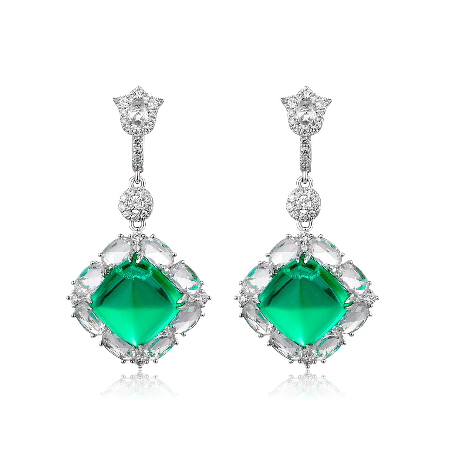18k white gold lab diamond and emerald earrings