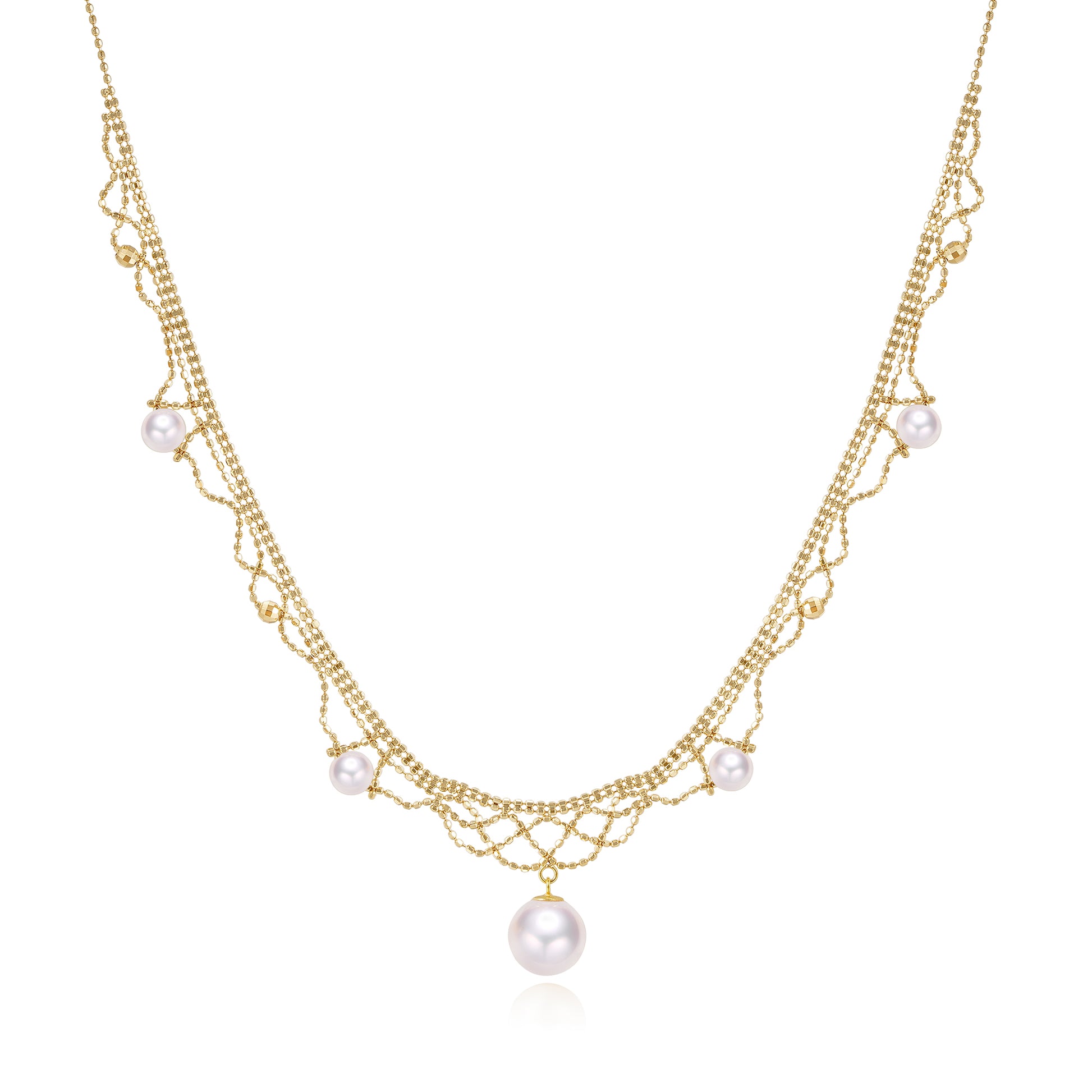 This necklace in the shape of lace, when paired with Akoya pearls, fully shows the softness and elegance of women.
