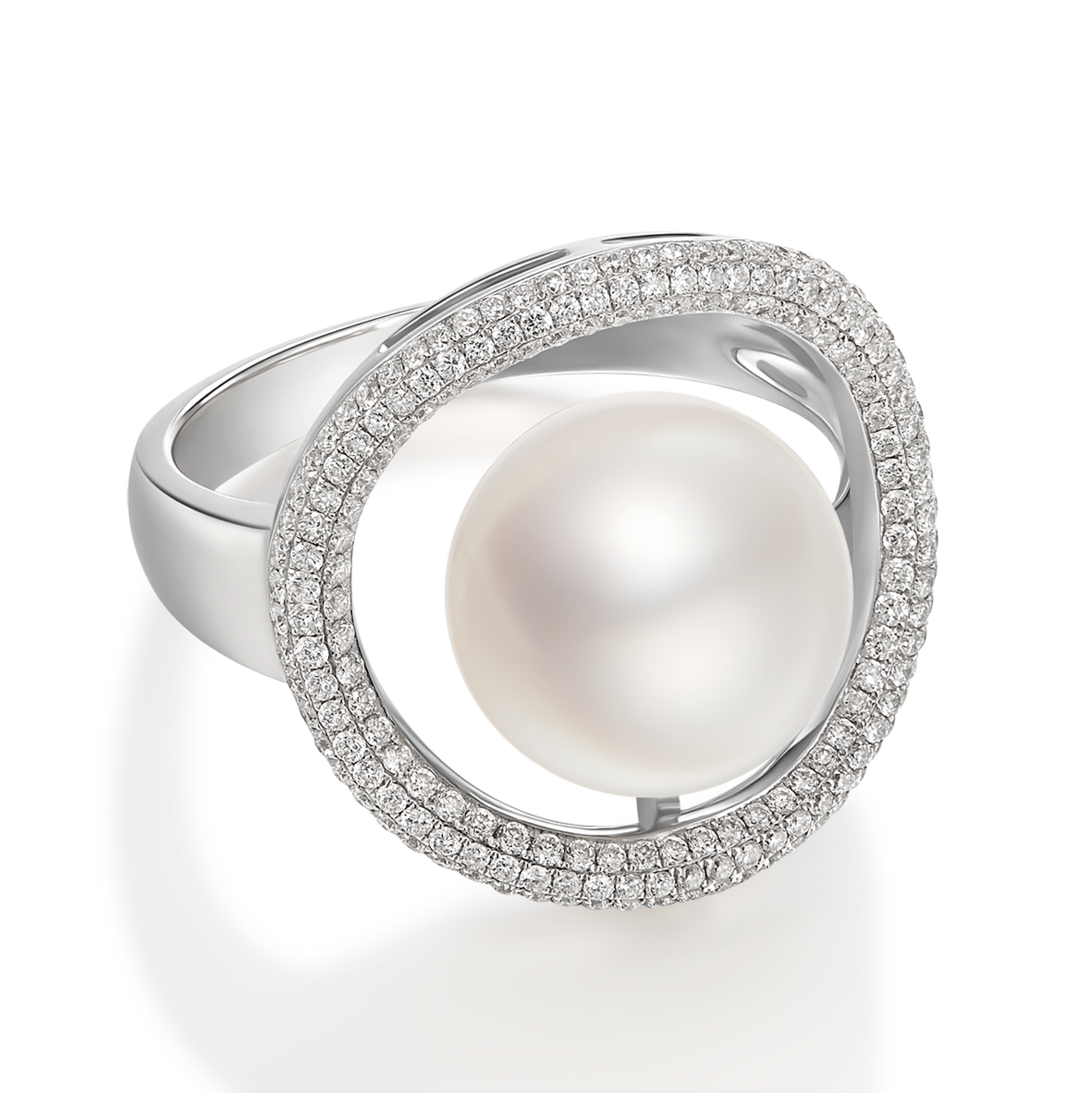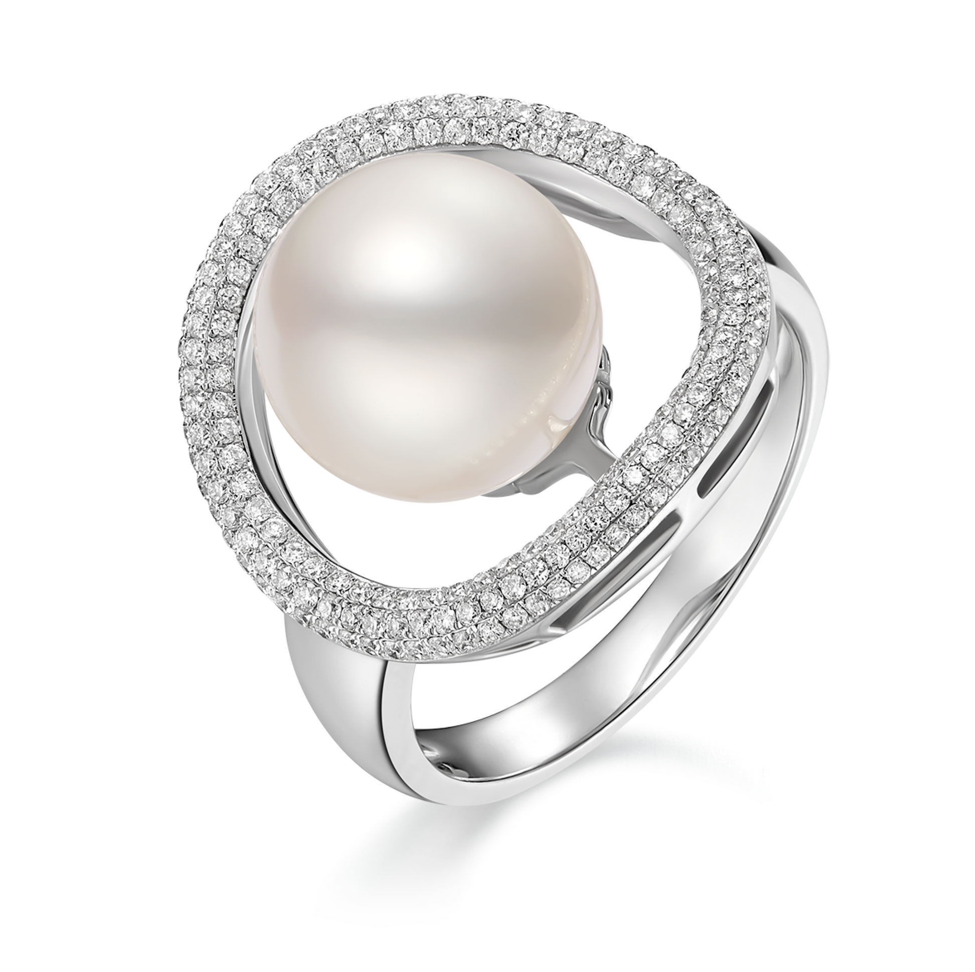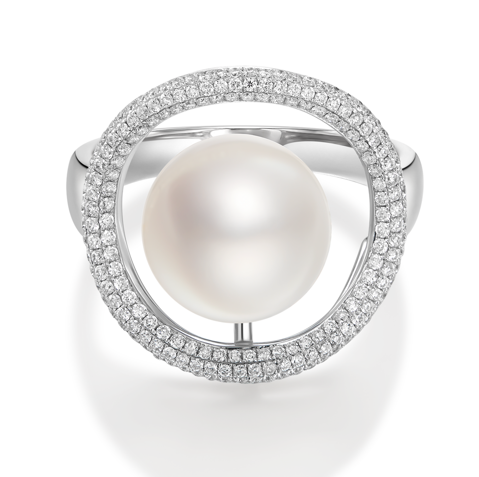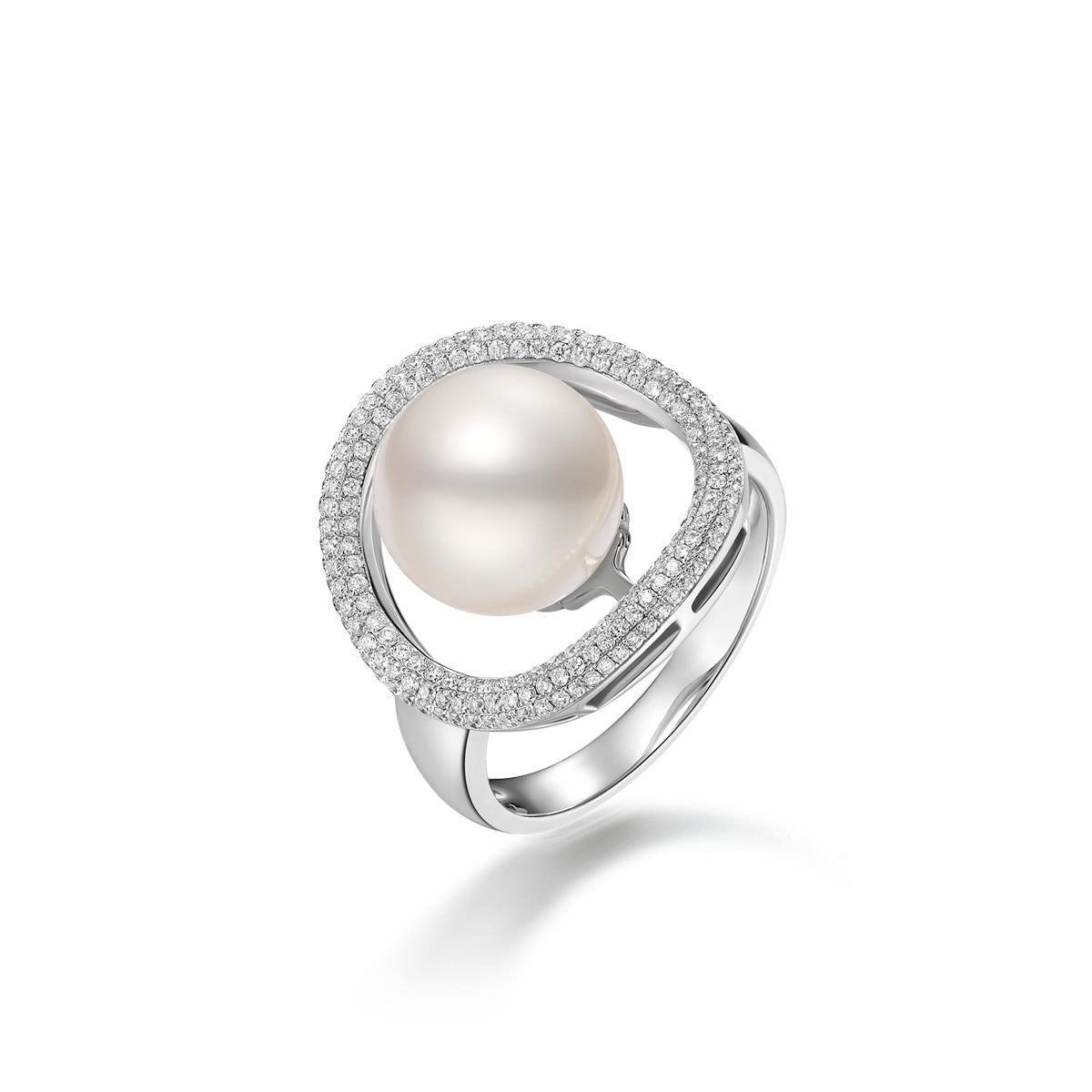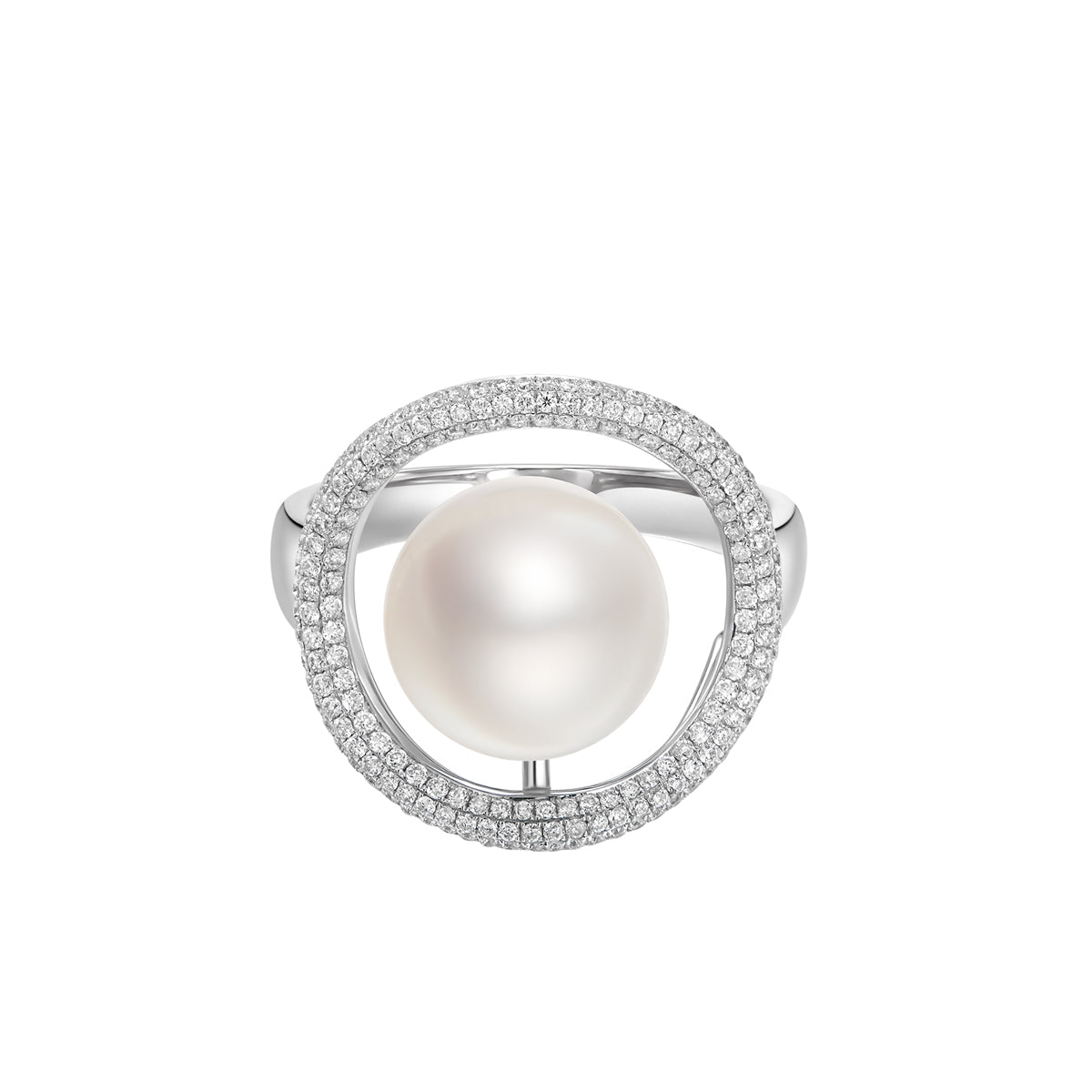 Putting on this magnificent diamond and pearl ring makes one feel as noble as a queen.