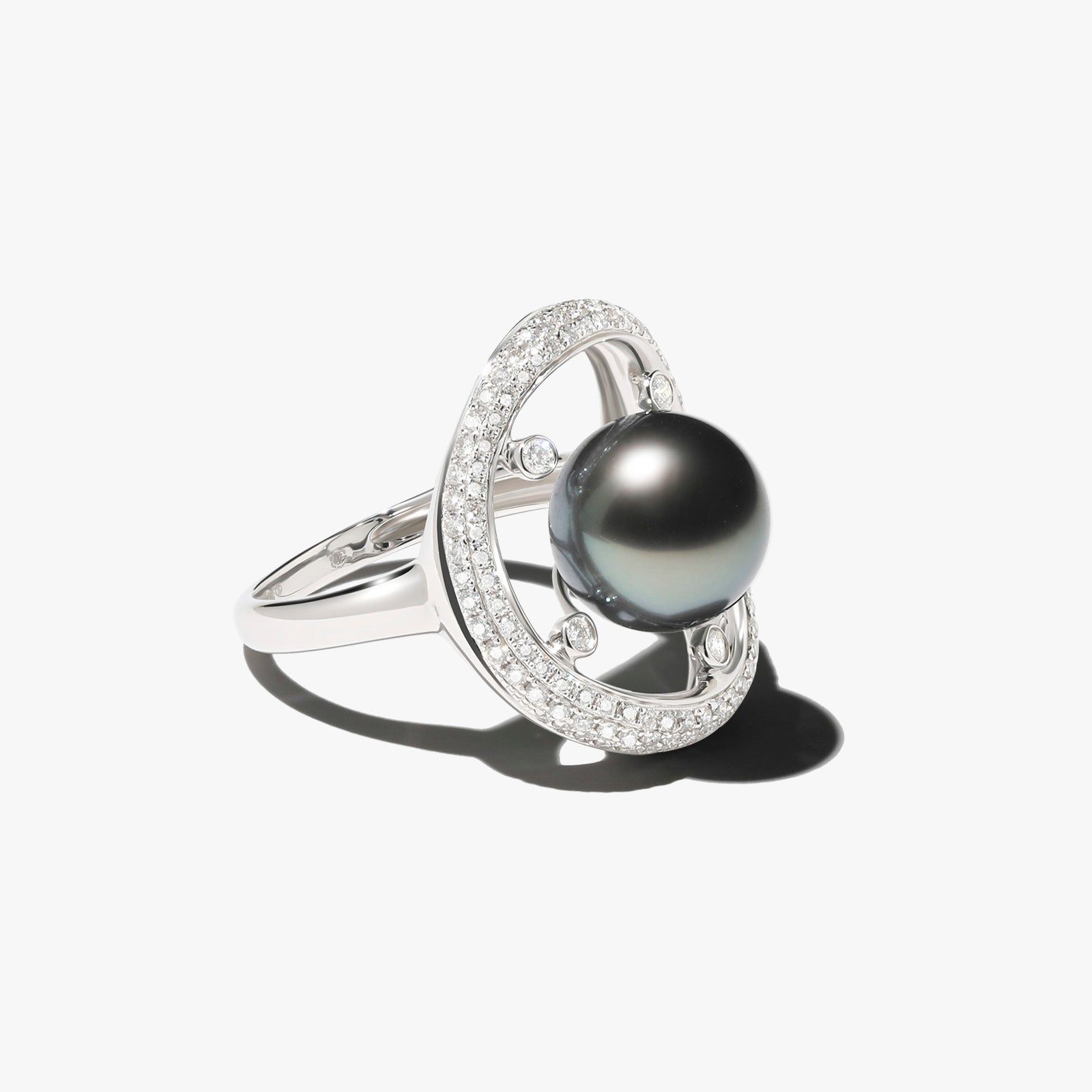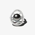 18K White Gold Tahitian black Pearl And Diamond Ring